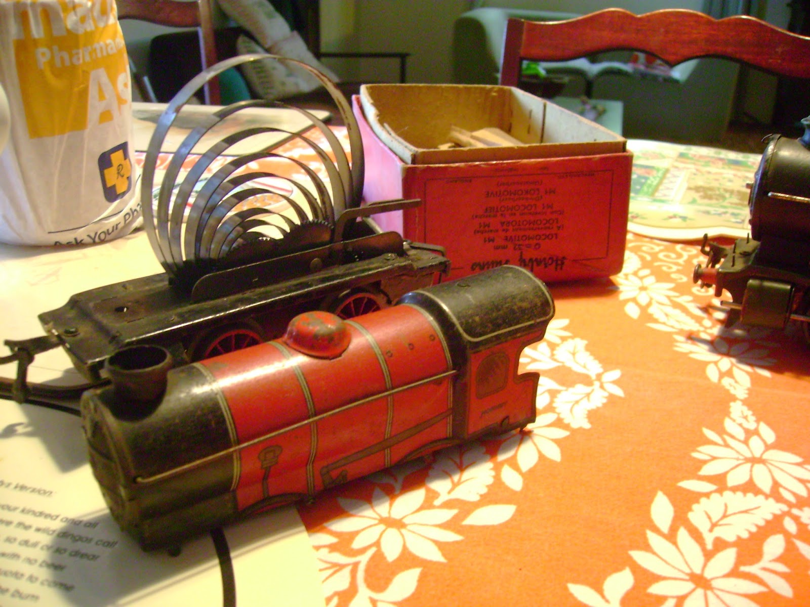Another very enjoyable experience was having a look at some old 50's Hornby O gauge items, still owned by the original recipient! A 1950 M1 tender loco whose spring had 'exploded' sending the body into orbit, and a no. 501 LNER tender loco in very nice condition, and still serviceable.